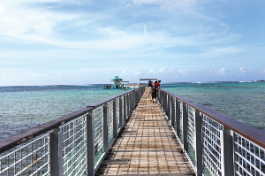 해중 전망대를 찾아가기 위해서는 물 위의 긴 다리를 건너야 합니다. 이 다리를 걷는 듯한 경험은 마치 아름다운 바다를 걷고 있는 것 같은 기분을 선사합니다. 푸른 바다의 끝없이 펼쳐진 수평선과 구름이 어우러진 환상적인 배경을 감상하며 셀카를 찍을 수 있는 이곳은 마이크로네시아 지역에서 유일한 해저 전망대로, 물 위를 걷는 상상을 현실로 만들어줍니다.